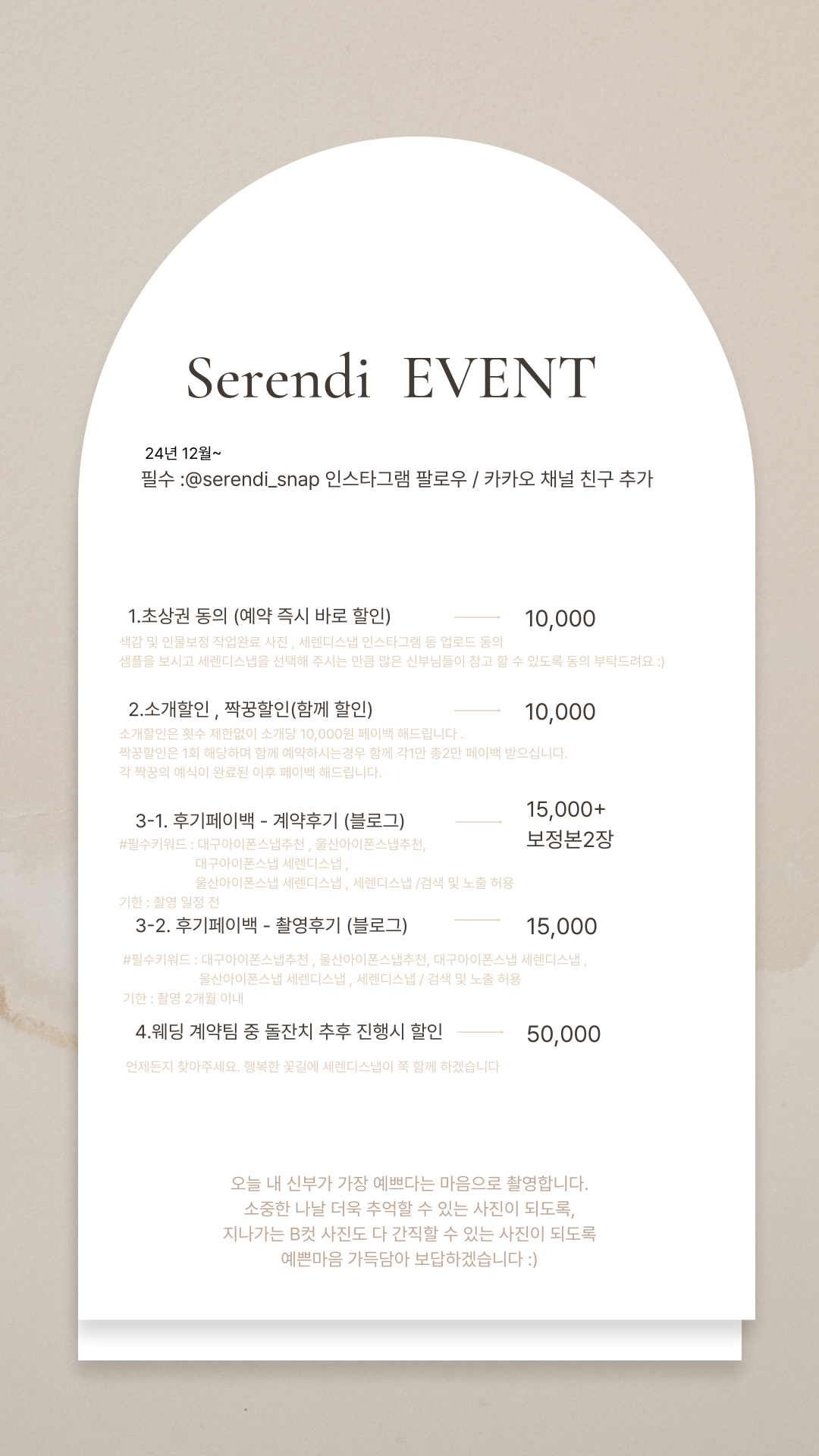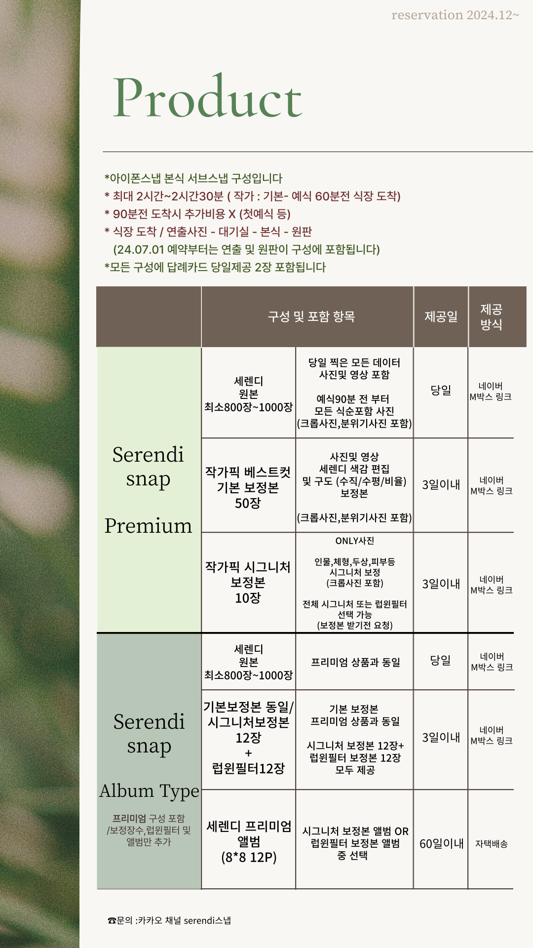 -촬영 기준 1개월 이내~촬영당일 : 환불 불가